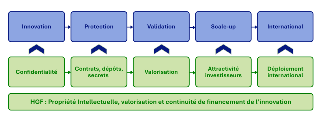 Nous considérons aussi que la propriété intellectuelle joue un rôle décisif dans la continuité du financement de l’innovation. Elle contribue à sécuriser les premières étapes, souvent soutenues par des fonds publics, puis à rendre l’entreprise plus lisible et plus attractive pour les investisseurs privés au moment du scale-up.